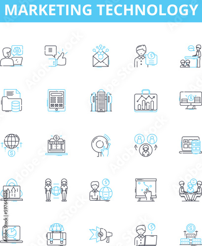 Marketing technology vector line icons set. Marketing, Technology, Digital, Platforms, Analytics, Automation, eCommerce illustration outline concept symbols and signs