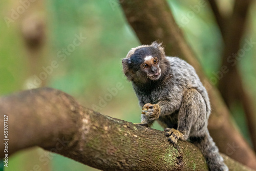 Marmoset monkey on a tree in the wild