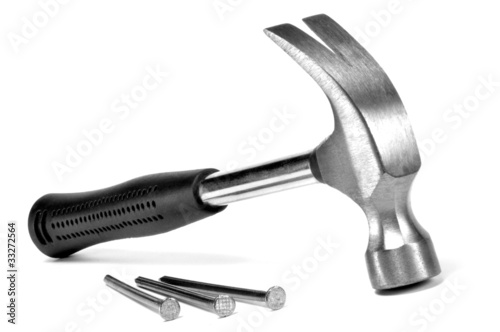 marteau de charpentier et clous