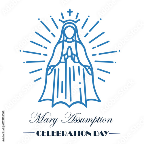 Mary text lettering handwritten and logo for the Assumption of Mary Celebration Day greeting in flat vector style. Virgin Mary icon vector. Assumption of Mary Poster, August 15