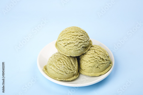 Matcha Green Tea Ice Cream Scoops on White Plate