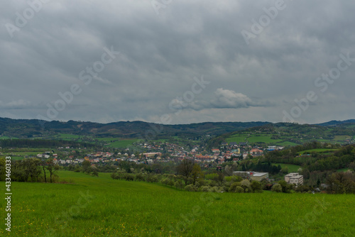 Meadows and forests near Vizovice town after big rain with cloudy sky
