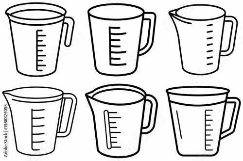 Measuring Cup Outline Coloring Book Page Line Art Drawing Set