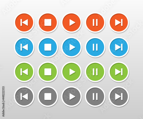 Media player control button in circle with different color.