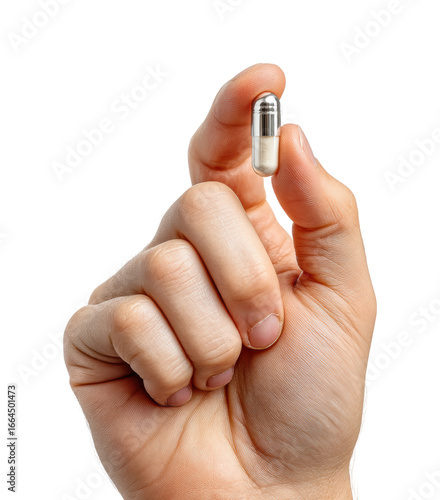 Medical capsule in hand health awareness product, isolated on transparent background, png