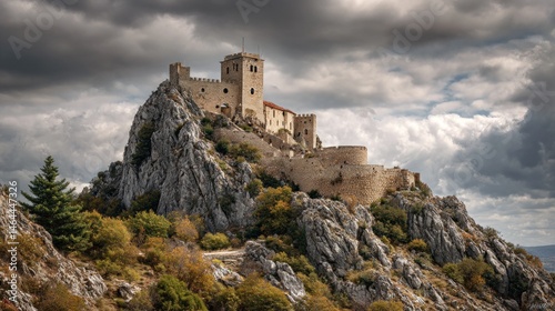 Medieval castle perched on rocky hilltop