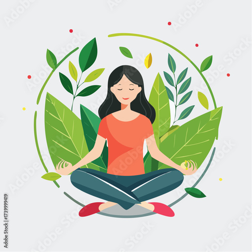 Meditation Illustration Woman Meditating, Yoga, Wellness, Mindfulness