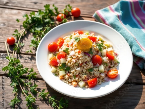 Mediterranean Bulgur Salad with Cherry Tomatoes and Cucumber
