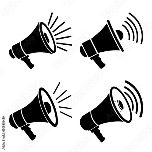 Megaphone Icon Set for Marketing and Promotion Silhouette Vector Isolated on Transparent Background
