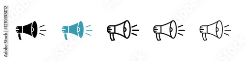 Megaphone icons in black and blue set