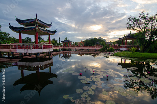 Melati Lake, Perlis, Malaysia Chinese Architechtural Bridge.