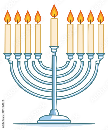 Menorah with burning candles for traditional holiday symbol vector illustration