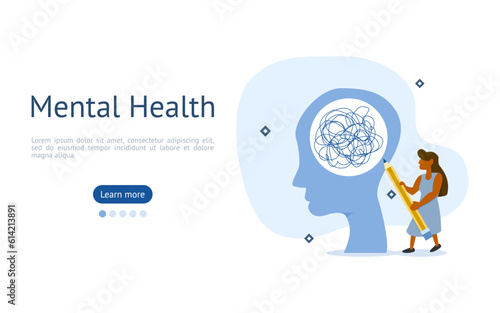 mental health care illustration set. Character with stress, depression, emotional burnout and problems in the head. psychotherapy concept. vector illustration.