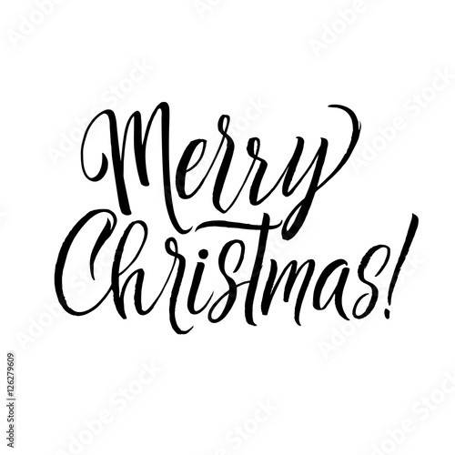 Merry Christmas Calligraphy. Greeting Card Black Typography on White Background