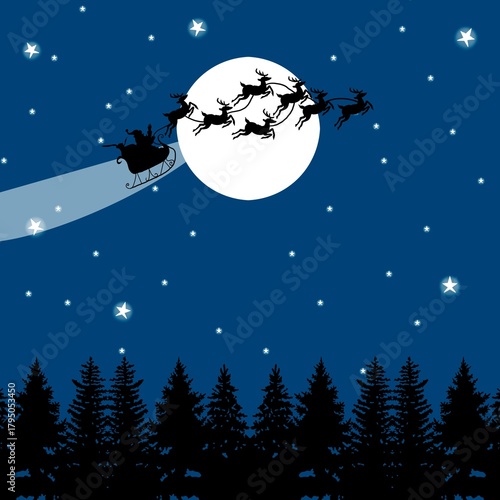 Merry Christmas scene with Santa Claus and his reindeer delivering special gifts under the soft glow. Snow gently falls across the design, creating a magical and heartwarming Perfect for the Christma