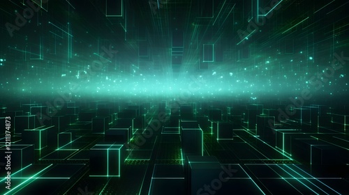 Mesmerizing green laser grid forming a sleek digital matrix pattern layout Futuristic technology backdrop with stylized geometric visualization of data energy and high tech connectivity