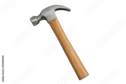 Metal claw hammer with wooden handle isolated on transparent background, ready for use in construction and diy projects
