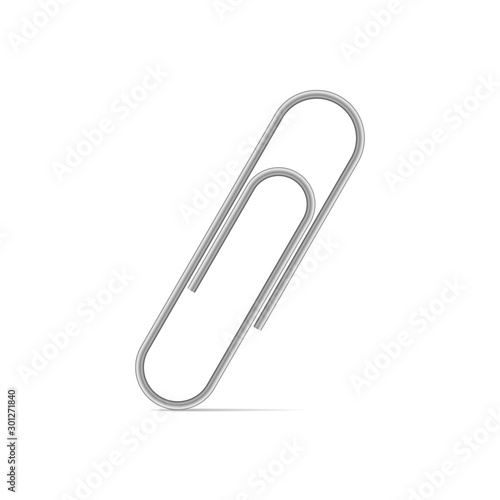 Metal paper clip isolated on white background. Vector Illustration