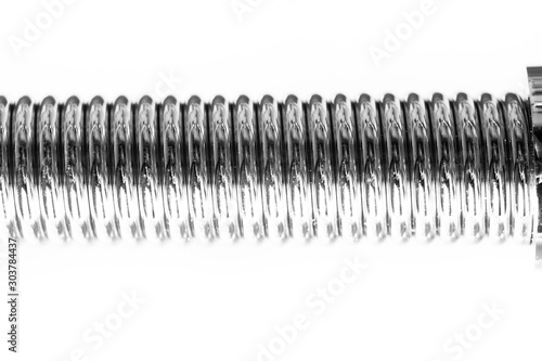 Metal spring on a light background. Toned