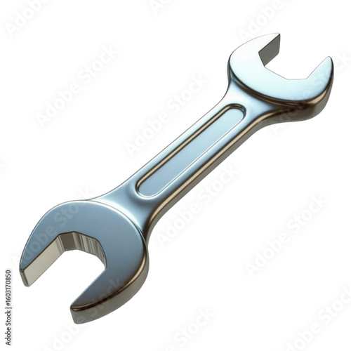 Metallic open end wrench isolated on a white background in professional studio lighting setting