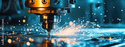 Metalworking CNC milling machine. Cutting metal modern processing technology.