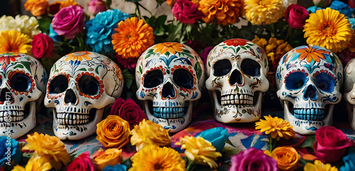 Mexican day of the dead sugar skulls background Mexico colorful vibeant