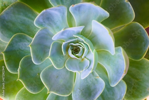 Mexican snowball (Echeveria elegans). Succulent plant in the garden. Close up.