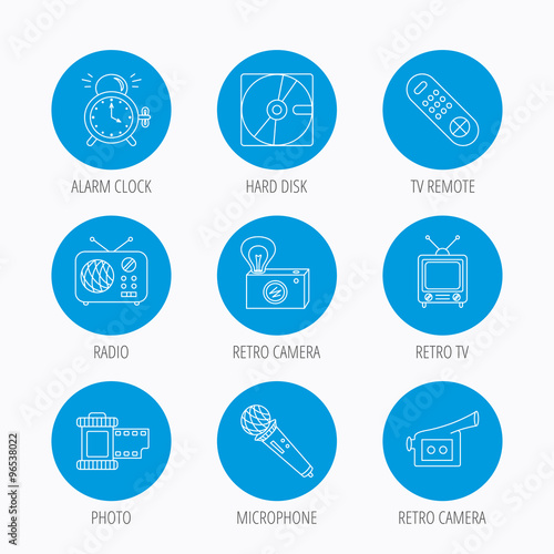 Microphone, video camera and photo icons.