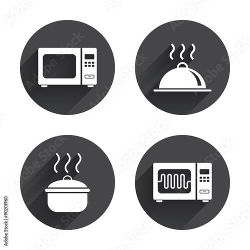 Microwave oven icon. Cooking pan, food serving.
