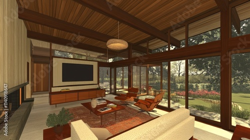 Mid-Century Modern Living Room Design: A Luxurious and Serene Space