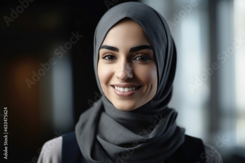 Middle aged arab businesswoman with a hijab smiling in a modern office