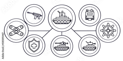 Military equipment icons shield gear weapon vector