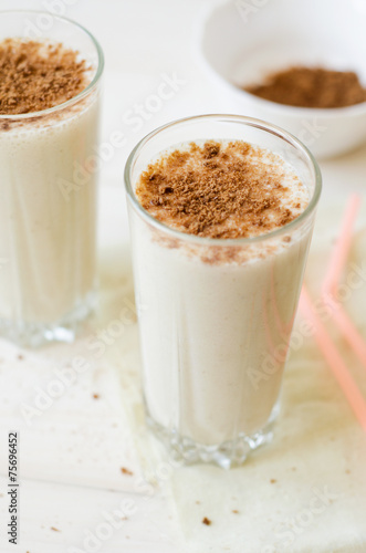 milkshake with chocolate topping in glass cup