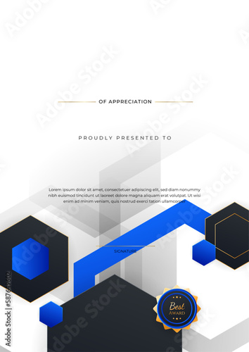 minimal blue triangle certificate template design