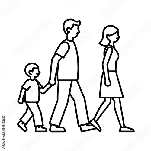 minimal family walk line drawing graphic art