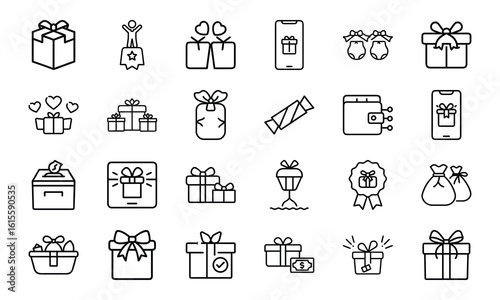 Minimal Line Art Gift and Present Icons – Holiday, Birthday, and Celebration Themed Icon Set for Digital Use