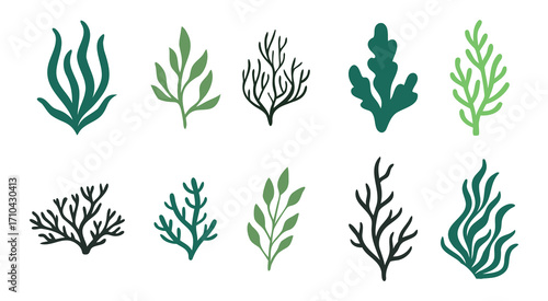 Minimal Plant and Leaf Icon Collection in Green and Gray