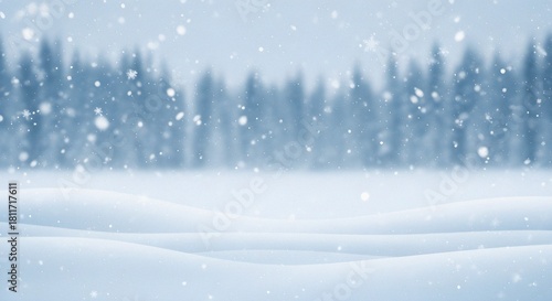 Minimal Snowy Landscape Background with Falling Winter Flakes and Christmas Copy Space
