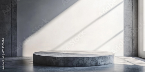 Minimalist 3D Podium with Concrete Texture for Product Presentation in an Empty Studio Setting