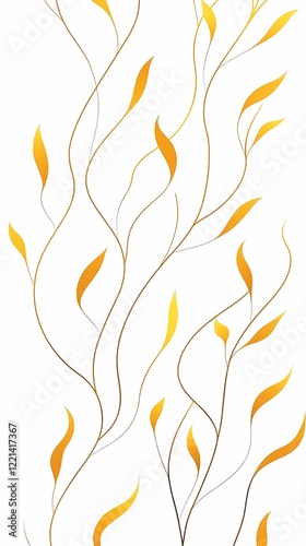 Minimalist abstract background featuring flowing yellow and black leaf patterns with a clean white backdrop
