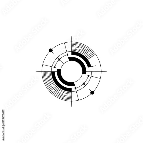 Minimalist Abstract Geometric Design, Concentric Circles, Black & White