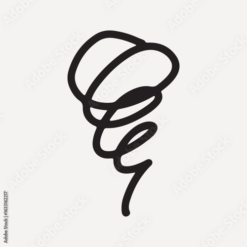 Minimalist abstract swirl design in black on white, element vector