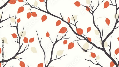 Minimalist Autumn Tree Branches Seamless Pattern with Falling Leaves for Modern Designs