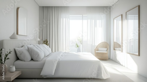 Minimalist bedroom with a double bed, bright ambiance, and subtle decorative touches, creating a tranquil retreat.