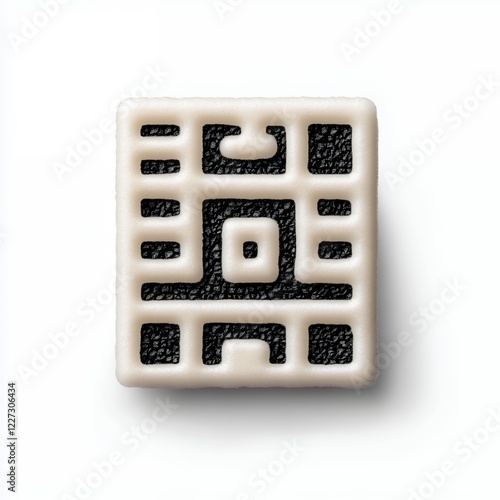 Minimalist Beige Square Tile with Black Geometric Pattern: Abstract Design Element