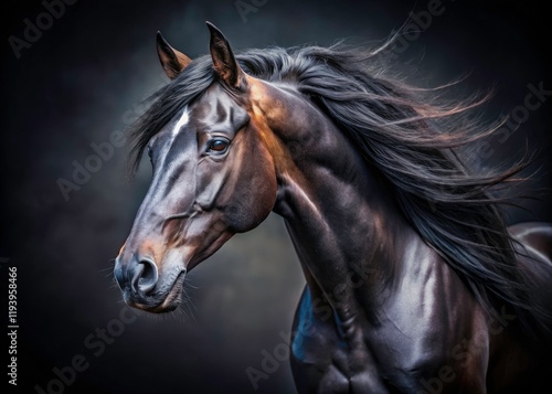 Minimalist Black Stallion Headshot - Sleek Muscle Intense Gaze Horse Photography