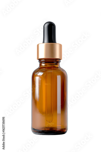 Minimalist brown glass dropper bottle with gold cap on white background. Elegant, clean, ideal for skincare product mockup or cosmetic branding.