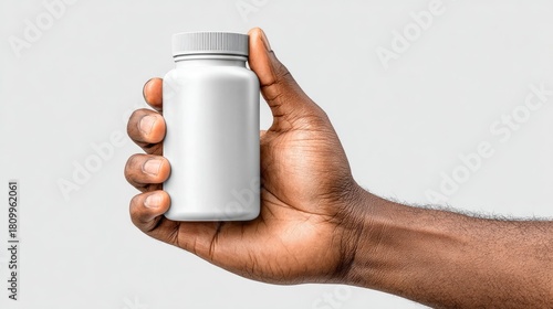 Minimalist Close-Up of Hand Holding Blank White Supplement Bottle for Product Mockup