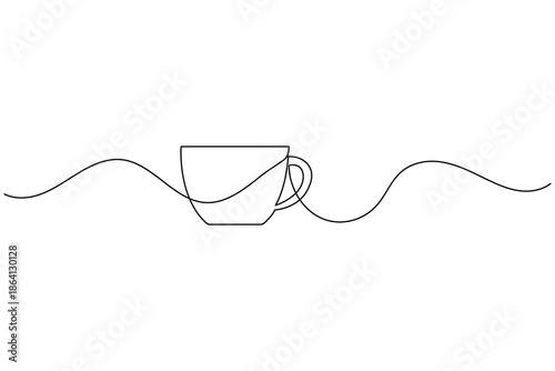 Minimalist continuous line art coffee cup design vector illustration