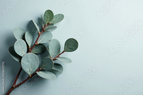 Minimalist gray background with silver dollar eucalyptus, design, gray, leaves